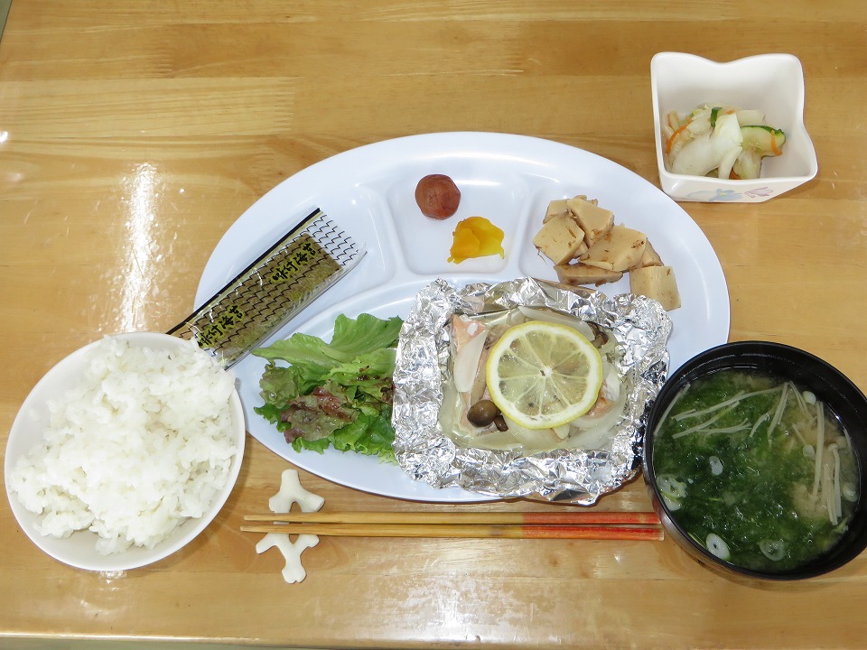 | 朝メシ。 朝から鮭のホイル焼きなんて嬉しい。 ただ、俺的にはもう少し塩っ気があればなおよかったな。 |